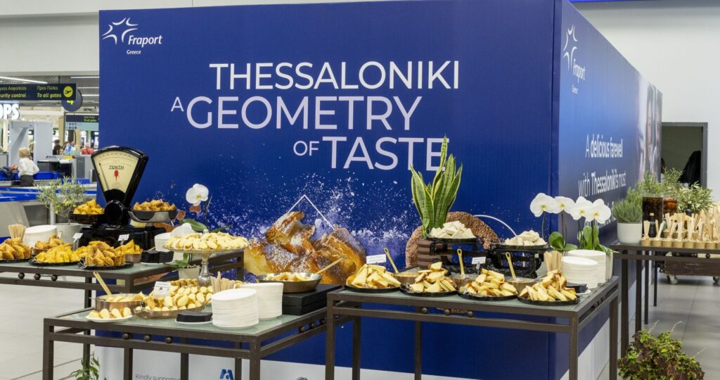 Titled “A Geometry of Taste”, the event took place on Thursday, October 2, in the airport’s departures area. More than 1,500 visitors were welcomed to discover the flavours of Thessaloniki through emblematic local products presented in geometric forms. The result was an authentic gastronomic experience that showcased both the city’s culinary traditions and its cultural identity.