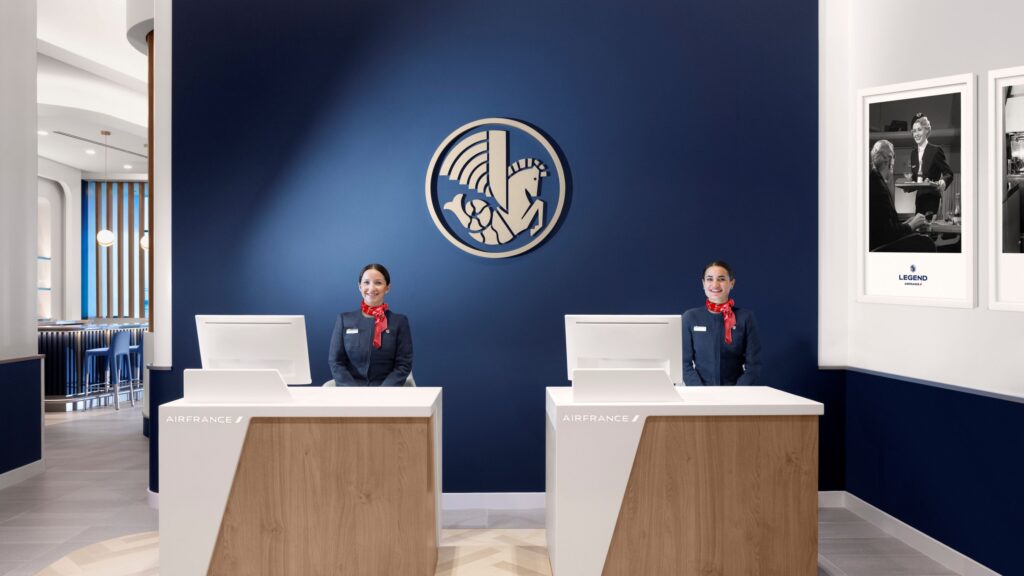 The décor pays tribute to the airline’s historic winged seahorse emblem and vintage posters that reflect Air France’s rich cultural heritage. Soft, enveloping furniture ensures maximum comfort, while the large bay windows flood the space with daylight.